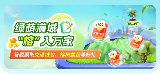 积分排名:2025年12月28日24:00前累计积分前10名(含并列)用户,可受邀参加2026年1月1日开赠仪式,领取千年古榕“榕二代”盆栽奖品及100元交通钱包!2026年1月17日24:00前累计积分排名前500名(含并列)用户,可领取千年古榕“榕二代”盆栽奖品。