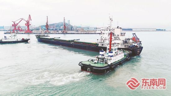 12月19日,一批从马来西亚进口的1.5万吨硅砂抵达东山口岸,顺利靠泊城垵作业区2号泊位(如图)。这是东山口岸首次进口该货物。该泊位自2023年6月首次临时开放以来,相继开通土耳其大宗散货航线、东山—厦门外贸内支线等,为东山玻璃产业原料进口、成品出口打通了外贸新通道。