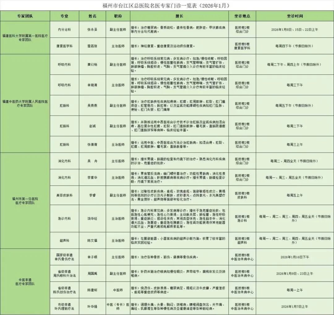 福州市台江区总医院名医专家门诊一览表