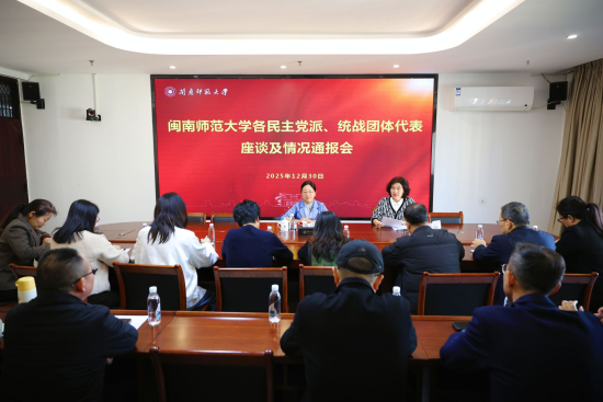 日前,闽南师范大学召开各民主党派、统战团体代表座谈及情况通报会。会议深入学习贯彻党的二十届四中全会精神,全面总结学校2025年统战工作成效,希望各民主党派、统战团体继续与学校党委同心同德、携手并肩,共同推动学校各项事业迈上新台阶、实现高质量发展。(闽南师范大学党委统战部)