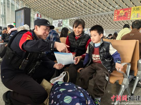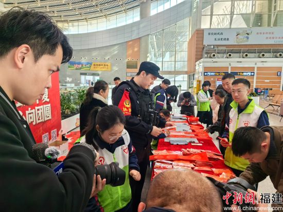 中新网福建新闻2月2日电(高雅)2月2日,2026年春运大幕正式开启,厦门北站迎来返乡客流高峰。据统计,仅春运首日厦门北站的发送和到达客流合计达到约10万余人。为确保春运期间旅客出行平稳有序,厦门北站派出所紧扣“平安春运、有序春运、温馨春运”工作目标,统筹警力部署、深化为民服务、强化安全宣传、严密巡逻防控,并联合车站特邀高校书法老师与青年志愿者开展“送姓氏春联福字、警民互动贺新春”等主题活动,以硬核守护与温情服务,为旅客平安返乡筑牢安全屏障、增添新春暖意。