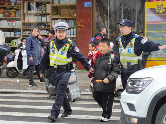 校园周边的安全是护学工作的重中之重。民辅警们在车流人流中穿梭,耐心引导车辆有序通行、即停即走,细心护送学生安全过街,全力保障孩子们上、放学路安全畅通、井然有序。