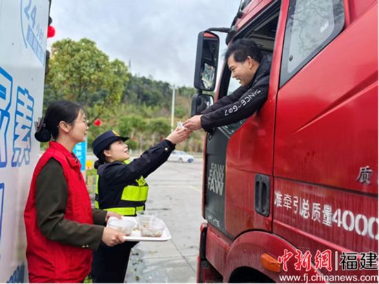 中新网福建新闻3月3日电(李栋 朱水英 黄和光 林欢) 3月3日,正值农历正月十五元宵节,龙岩高速适中服务区内暖意融融、欢声不断。龙岩高速执法支队联合龙岩高速管理分公司、省经开龙岩分公司等部门,共同开展“元宵送暖·平安同行”主题志愿服务活动,为奔波在路上的司乘人员送上一份特别的节日温暖。