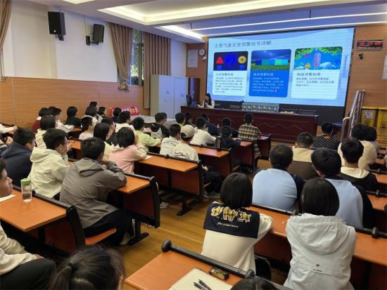 见过极端天气来临时的震撼画面吗?知道风云卫星是如何“俯瞰”地球、捕捉气象变化吗?活动伊始,气象科普员带来的气象趣味短片,生动有趣地向同学们讲述了世界气象日的由来、气象灾害预警信号等气象知识。银幕上,风云卫星传回的实拍影像,让同学们直呼“太震撼”。