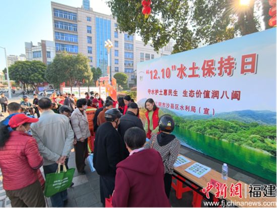 中新网福建新闻12月11日电 12月10日,在福建省第十二个“水土保持宣传日”到来之际,三明市沙县区水利局在府前广场举办主题为“守水护土惠民生,生态价值润八闽”的大型宣传活动,通过多种形式向市民普及水土保持法律法规。