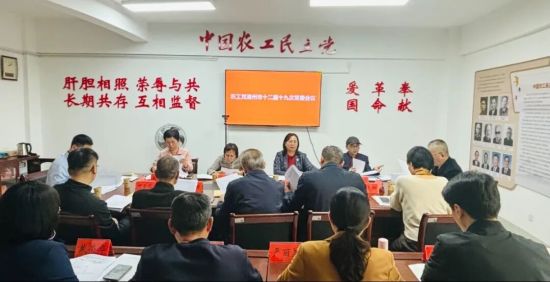 12月24日,农工党漳州市十二届十九次常委会在党派楼四楼会议室召开。农工党漳州市委会主委何伟燕主持会议,市委会副主委林如凤、黄金明、张少榕、张文山、陈文礼及市委会常委出席会议,机关全体干部列席会议。