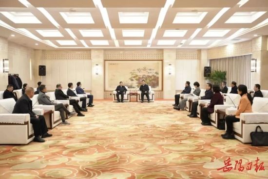 民建湖南省委会专职副主委曾斌,中共岳阳市委常委、统战部部长邱虹,岳阳市副市长段宁,岳阳市政协副主席、民建岳阳市委会主委李永波等领导出席会见。