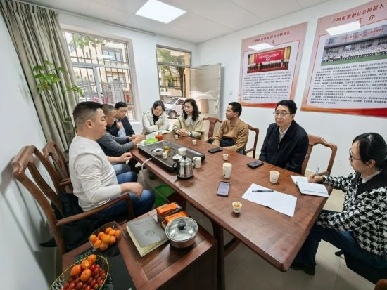 丙午新春,万象更新。3月6日下午,三明市委统战部常务副部长林远程,部务会议成员、市侨办主任徐书健,部派党建指导员、市委统战部机关党委专职副书记严歆婷,以及部干部科负责人余锋一行,前往三明市新联会联络点,与会长陈登辉、党支部书记、执行会长雷贤伟、监事长张雄明、秘书长朱宗举、理事黄海等开展新春茶叙,并进行座谈交流。